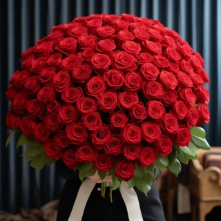 Этот великолепный букет из 101 красной розы - верх романтики и чувственности. Лепестки этих цветов отражают горячую искру страсти, а их аромат наполняет воздух неповторимым соблазнительным шлейфом. Этот букет способен растопить даже самое холодное сердце и подарить океан эмоций. Он выражает неповторимую красоту любви и сильные чувства, уносят в мир романтических мечтаний и желаний. Вечное восхищение в каждом бутоне, каждом лепестке. Это букет, который создает историю, погружает в океан счастья и оставляет незабываемые воспоминания.