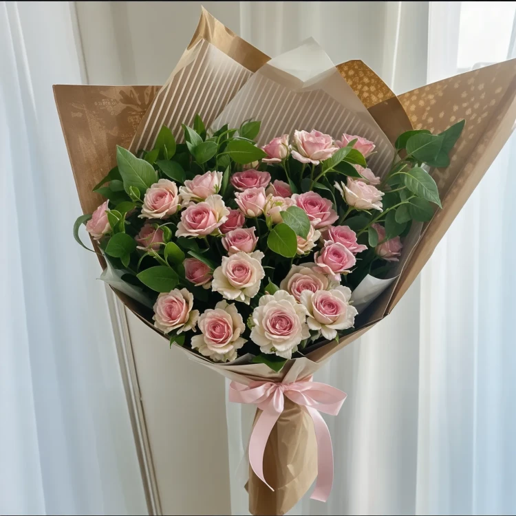 Восхитительный букет "Персиковое сияние" представляет собой множество одноголовых и кустовых роз, окутанных волшебством природы. Свежие и нежные цветы ласкают взгляд своей изысканной красотой, словно ветер разносит аромат цветущего сада. Упаковка из экологичного крафта подчеркивает природную гармонию букета, а украшение зеленью добавляет штрих оживленности. Отправьте этот букет вашим близким, чтобы преподнести им неповторимую композицию, воплощающую в себе чистоту и благородство элегантных роз.